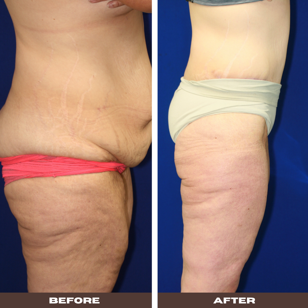 A tummy tuck surgically tightens the muscles of the lower abdomen and removes the over-stretched skin that remains as a “badge of womanhood.” Your abdomen will become flat and firm. An abdominoplasty or “tummy tuck” are two names for the same procedure. However, there are several types of abdominoplasties: “full,” “corset,” “mini,” and “fleur-de-lis.”